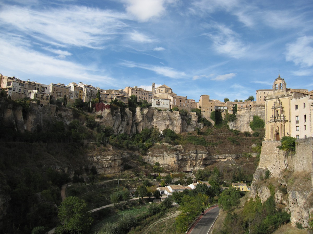 Ancora una vista di Cuenca dalla valle dello Huécar. Al centro la caratteristica cupola ottagonale della chiesa di San Pedro. Sulla destra, dalla parte opposta della valle, la facciata del convento di San Pablo. Cuenca, 19 ottobre 2013.