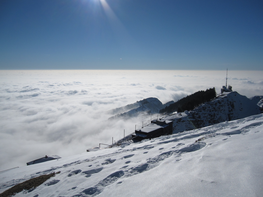 La vetta del Generoso emerge da uno strato compatto di nuvole. Monte Generoso, 2 gennaio 2011.