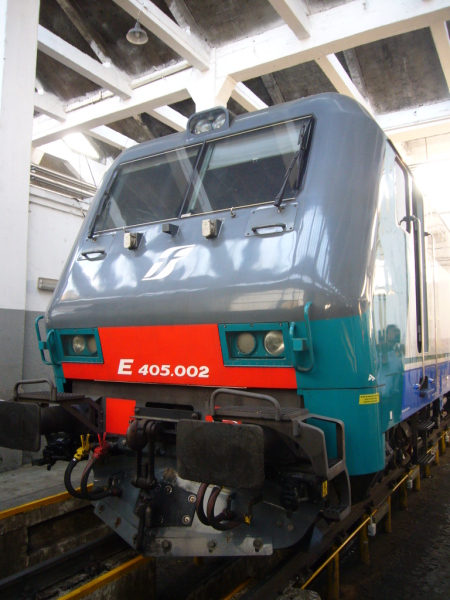 All'interno dell'officina possiamo ammirare da vicino la nuovissima E403.005, da poco consegnata alla divisione cargo. Poco lontano è in riparazione un'altra macchina di ultima generazione, la E405.002.